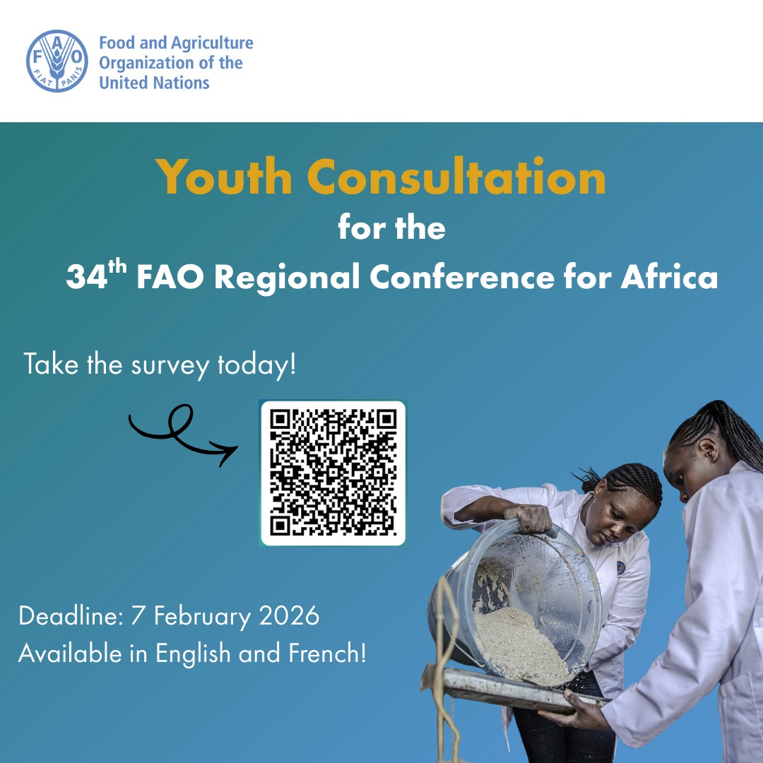 FAO encourages all interested youth to click on this link, https://t.co/d13YIUcRRI, to submit your recommendations by Saturday, 7th February 2026.