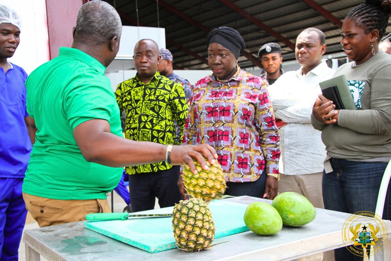 The Minister for Trade, Agribusiness and Industry, Hon. Elizabeth Ofosu-Adjare, accompanied by the Deputy Minister, Hon. Sampson Ahi, on Friday, February 13, 2026, paid a working visit to Blue Skies Fruit Juice Company as part of efforts to deepen government engagement with key agro-processing firms.